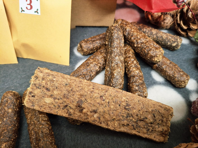 Contains 23 delicious Sausages (contain Chicken & Beef) and a Turkey meat strip for Christmas eve, all individually wrapped and numbered.